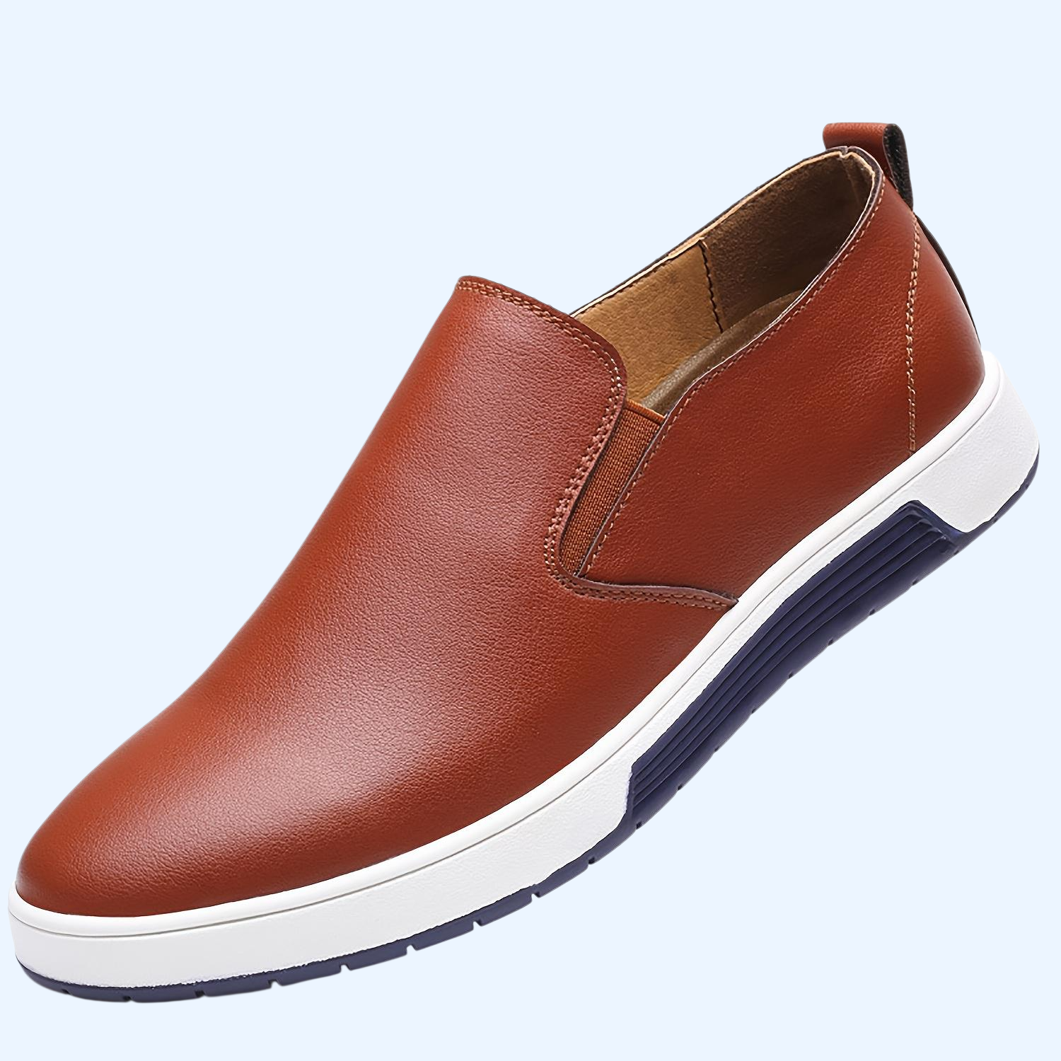 Men's slip on casual leather shoes feature premium leather, easy on/off design, cushioned insole, non-slip sole, lightweight comfort, and versatile style for daily wear.